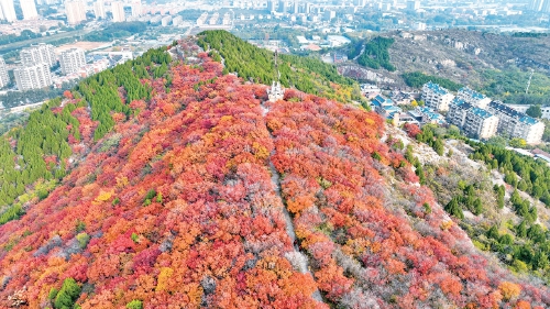 深秋時(shí)節(jié),濟(jì)南西部城區(qū)紅葉漫山